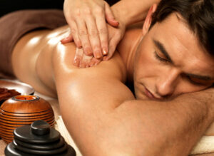 - Перейдите к разминанию: круговыми движениями пальцами снимайте напряжение в трапециях. Добавьте давление локтями для глубокого эффекта.
